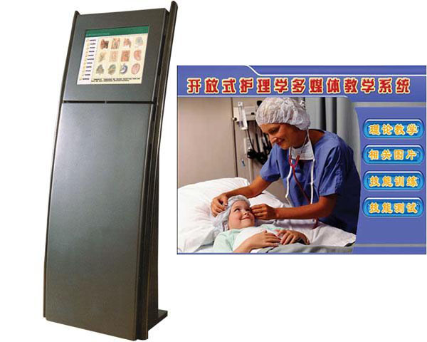開(kāi)放式護(hù)理學(xué)多媒體教學(xué)系統(tǒng)采用17寸液晶屏觸摸查詢一體機(jī)。