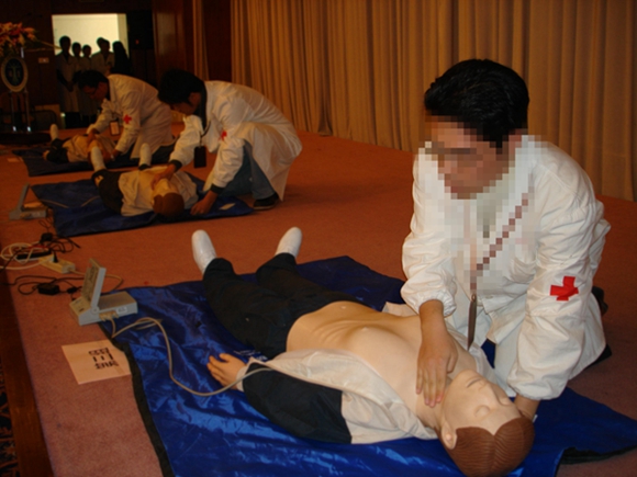 對于因異物哽塞致心跳停止的成人病患,民眾在施行心肺復蘇術流程不須特別做哈姆立克法,只須在每次施行人工呼吸前檢查口中是否有異物,若有異物,以食指掃除異物即可,但若醫(yī)護人員則仍須做哈姆立克法.突發(fā)性的心跳停止是成人死亡的主要死因,大部分的情況是因為患者本身有心臟方面相關的疾病。心肺復蘇模擬人可以使得發(fā)生心跳停止的患者,存活率大增至兩倍。實施心肺復蘇術應注意的事項胸外按摩不可壓於劍突處以免導致肝臟破裂。胸外按摩時,患耆需要平躺在地板或硬板上。胸外按摩時,不宜對胃部施以持續(xù)性的壓力,以免造成嘔吐。胸外按摩時,手指不可壓於肋骨上,以免造成肋骨骨折,胸外按摩時用力需平穩(wěn),規(guī)則不中斷,壓迫與松弛時間各半,不宜猛然加壓,胸外按摩時施救者應跪下雙膝分開與肩同寬,肩膀應在患者胸部正上方,手肘伸直,垂直下壓於胸骨上。