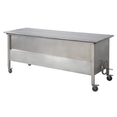 該解剖臺(tái)雙開(kāi)臺(tái)面平移掛放,鋼繩升降,手搖減速傳動(dòng)力,有標(biāo)本儲(chǔ)藏及解剖等功能。帶萬(wàn)向靜音剎車(chē)。