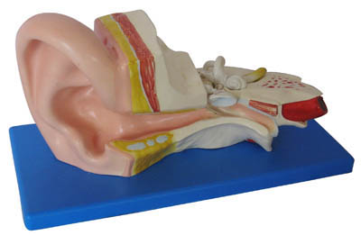 中型耳模型,適合初級科學(xué)課程使用,顯示有關(guān)聽力和平衡的所有主要結(jié)構(gòu)。分成2件,3倍放大。用PVC制成,安放于塑料座上。尺寸: 32x16x11 CM。