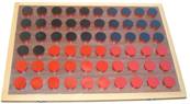 2.         圓棋子:實(shí)木質(zhì),60個(gè)。直徑 38mm,高18mm.;一面為紅色,一面為黑色。