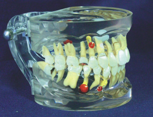 功能特點(diǎn):該模型顯示齲齒楔狀缺損,融合根,根尖周炎,根尖囊腫,畸形中央尖,釉珠,牙齦萎縮,壓根異常,冠折、根尖肉芽腫,阻生牙,乳牙滯留等。