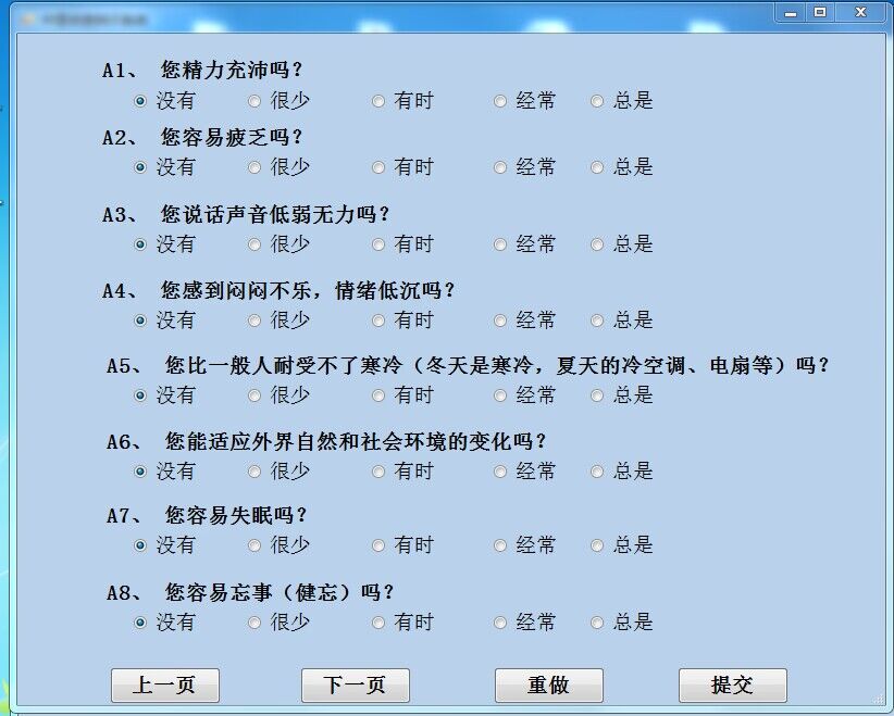 中醫(yī)體質(zhì)辨識(shí)系統(tǒng)-問卷測(cè)試界面