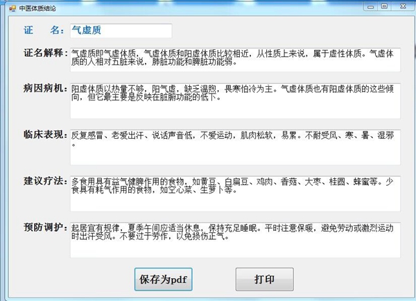■ 根據(jù)計(jì)算出的體質(zhì)類型,軟件自動(dòng)生成中醫(yī)調(diào)理保健建議。