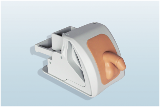 2 模型為便攜式外觀設(shè)計,仿真模擬男性外陰,恥骨聯(lián)合處觸診骨性標(biāo)志明顯,包含完整的陰莖、陰囊、肛門、尿道、前列腺等解剖結(jié)構(gòu),尿道具有生理彎曲,帶來接近真實的手術(shù)操作體驗。
